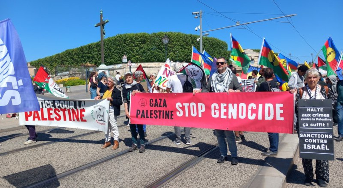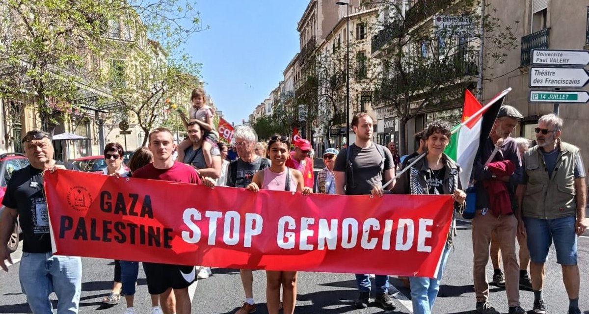 A Montpellier, l’AFPS34 était présente au départ et à la fin de la manifestation du 1er mai 2025 pour distribuer un tract reprenant l’appel des syndicats palestiniens et tenir une table d’information. Elle a également participé au cortège avec banderoles et drapeaux, aux côtés de 3500 manifestant.e.s syndicalistes, anti-fascistes, anti-colonisalistes.