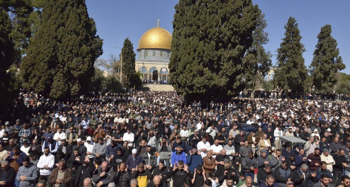 Photo : Malgré les restrictions massives d’Israël, des dizaines de milliers de Palestiniens prient à la mosquée Al-Aqsa pour le premier vendredi du Ramadan, 20 février 2026 © Quds News Network