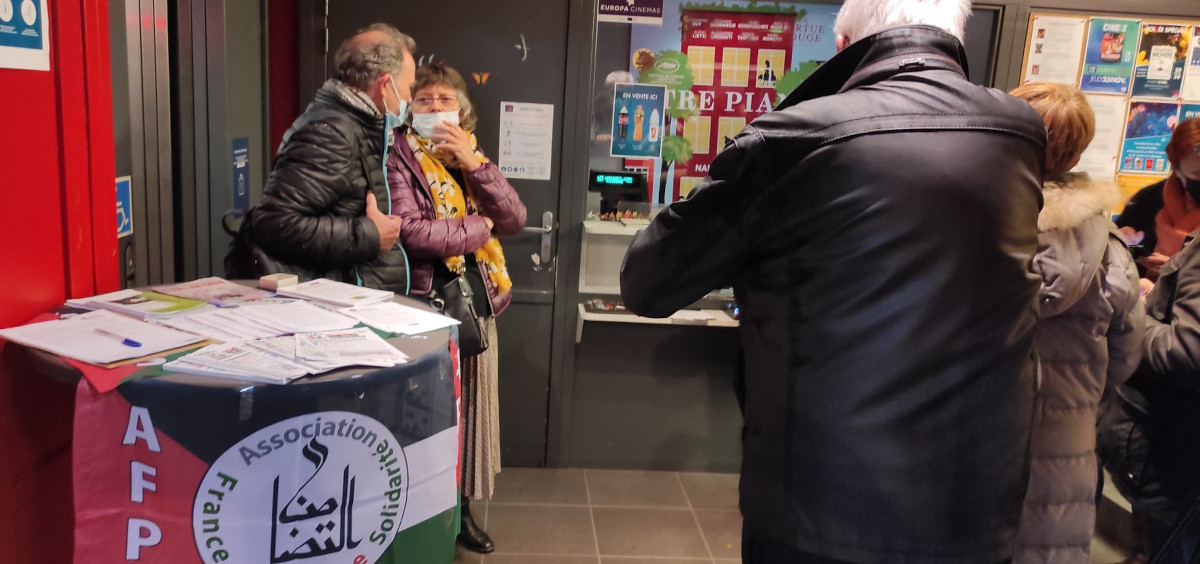 La séance de cinéma a été précédée d’une interview d’Anne Paq à Radio Arverne le 19 novembre, de la diffusion de 1.000 flyers sur le film, de centaines de messages sur les réseaux sociaux et d’un article très complet dans le journal La Montagne le 22 novembre 2021. Un reportage très riche a été publié sur un blog Mediapart sur le film et la solidarité avec les Palestiniens (https://blogs.mediapart.fr/georges-andre/blog/281121/anne-paq-realisatrice-temoignage-sur-realites-palestiniennes-avant-soiree-afps63 ). Tout ceci a contribué à rappeler ou faire connaître à de nouveaux publics ce que subissent les Gazaouis sous blocus et sous les bombes, et la lutte des Palestiniens pour le respect de leurs droits.