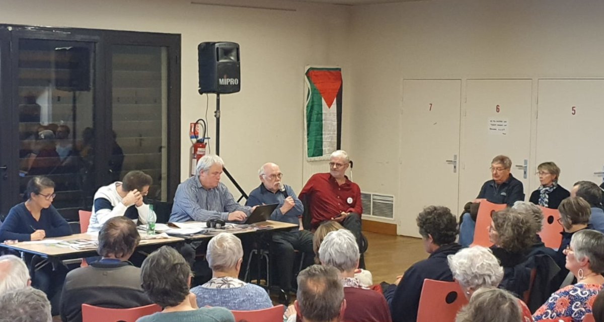 Le mercredi 20 mars en soirée se sont pressées 120 personnes dans la salle Barbara au Mans. Elles ont toutes répondu à l’invitation de la FSU, de la CGT, de la LDH et de l’Association France Palestine Solidarité 72, pour un temps d’information, de réflexion et de mobilisation à propos de l’horreur qui se joue à Gaza en ce moment même.