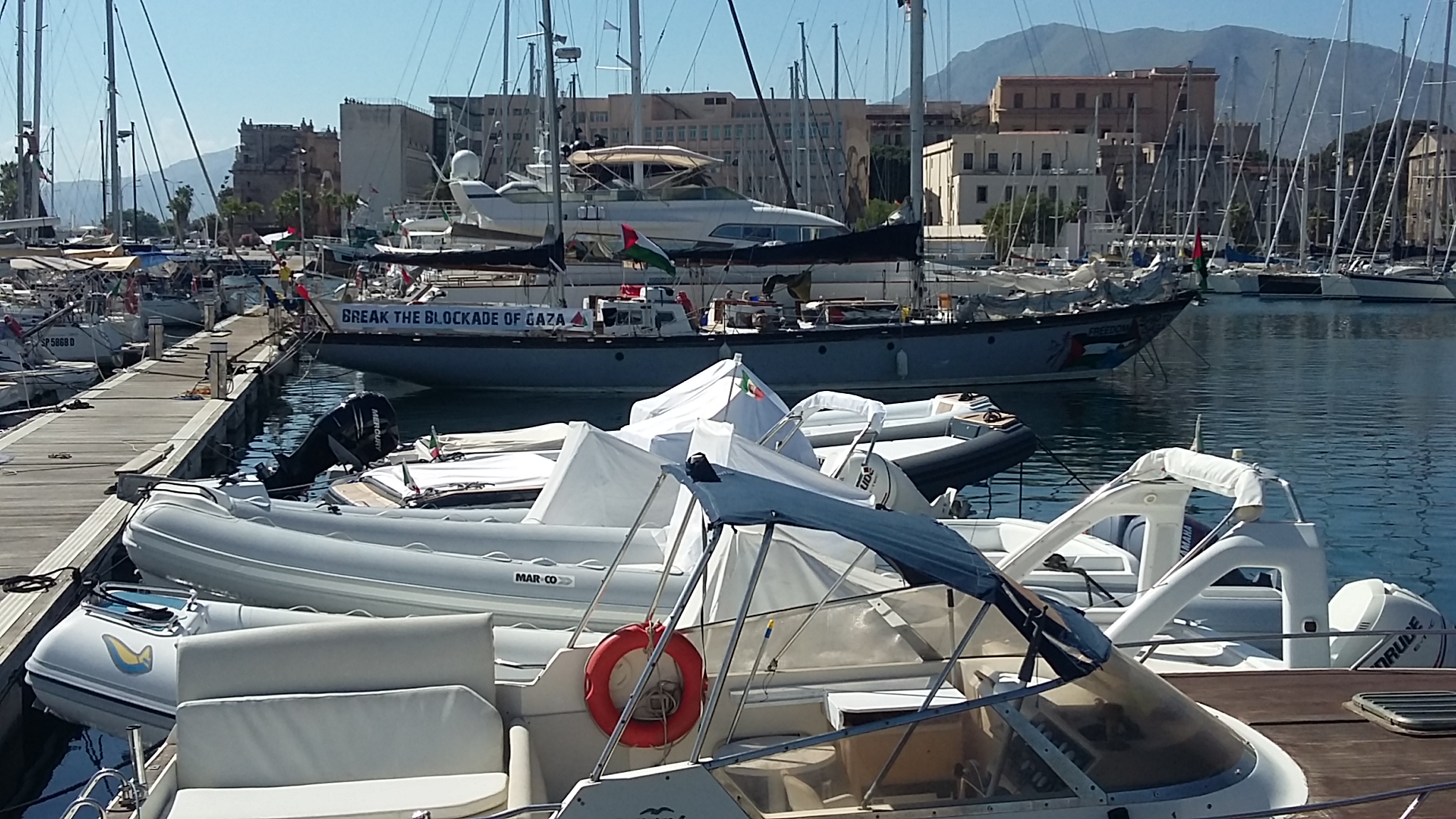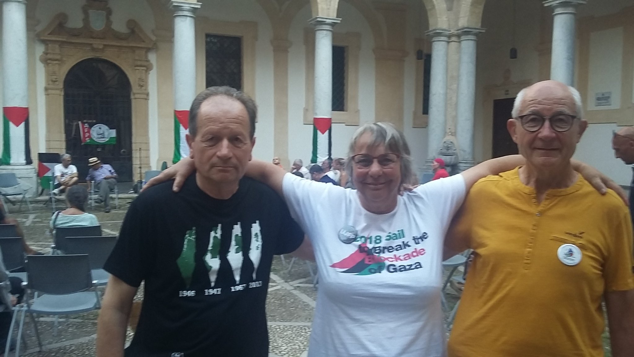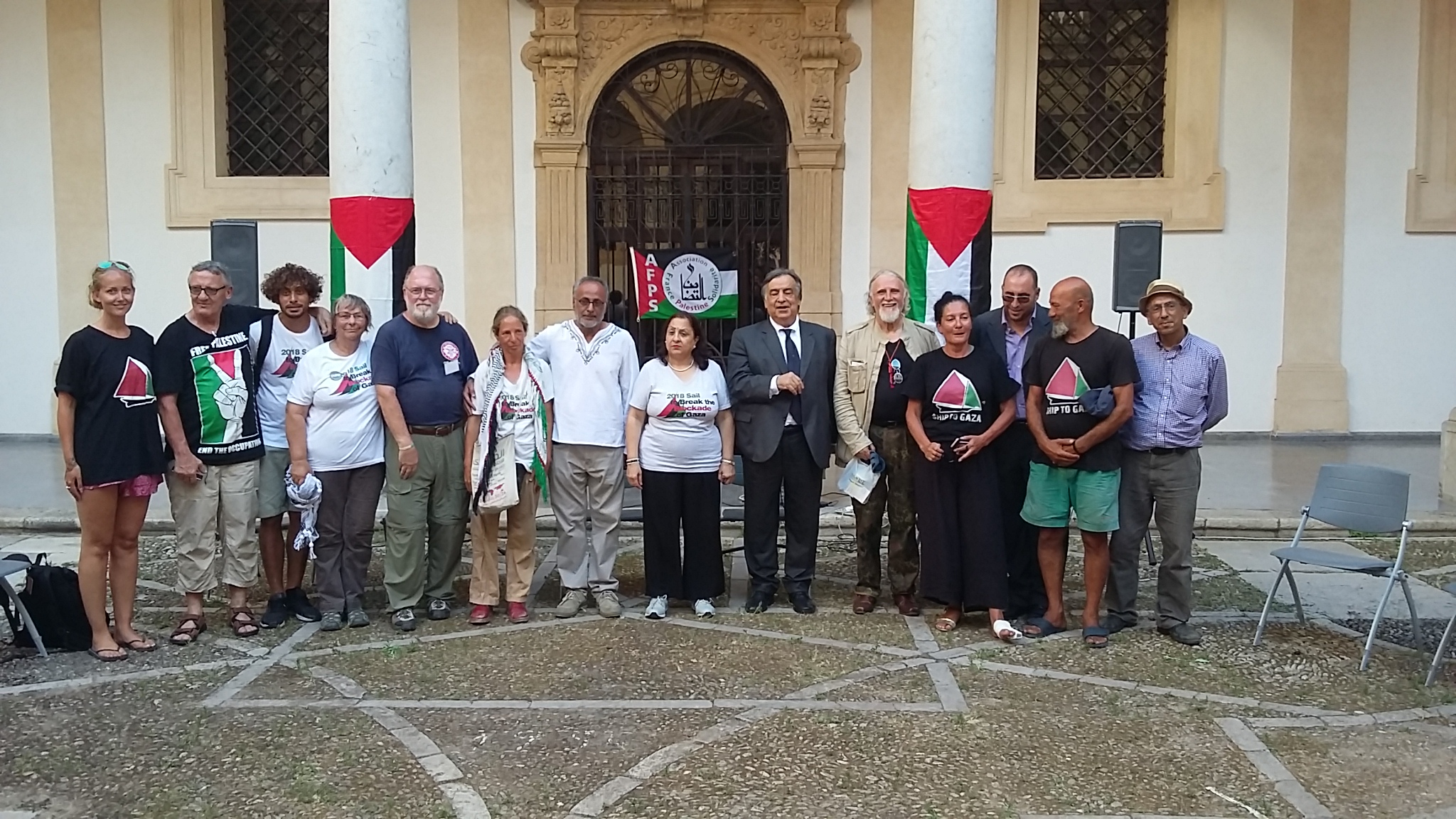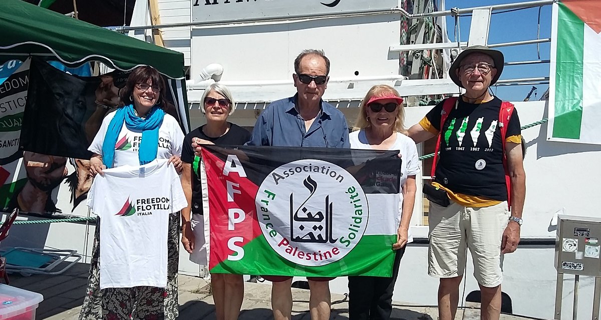 De passage à Palerme, des membres des AFPS 44 et 49 ont tenu à saluer la flottille et à lui renouveler le soutien de l’AFPS à la Flottille de liberté pour Gaza qui partira le 20 ou le 21 juillet 2018 pour Gaza afin d’essayer de briser le blocus imposé par Israël sur la bande de Gaza depuis 11 ans.