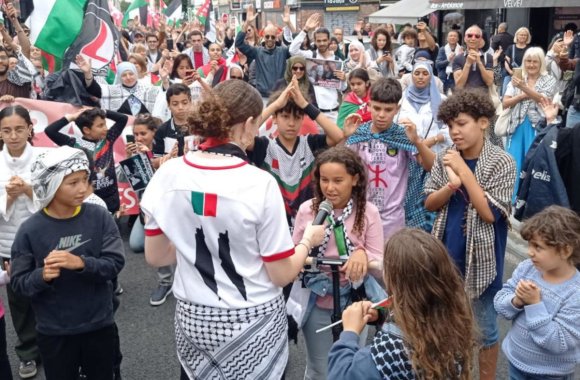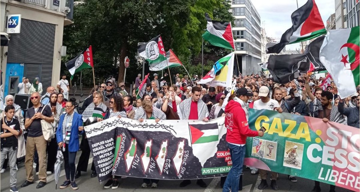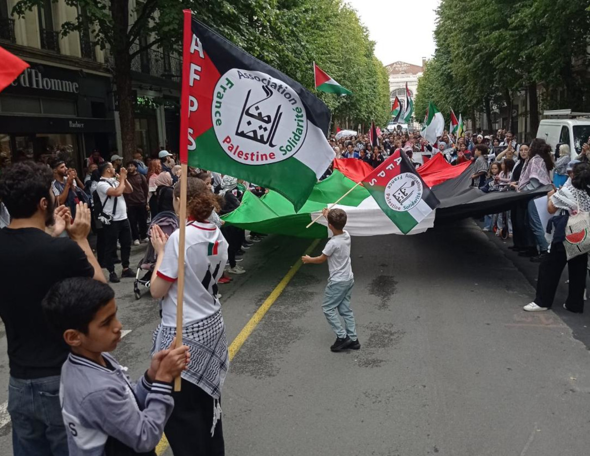 La marche a été ponctuée de slogans dénonçant la collaboration de l’État français dans le génocide à Gaza et le nettoyage ethnique dans toute la Palestine historique, exigeant des sanctions immédiates pour mettre fin à l’impunité de l’État raciste israélien, et la levée sans condition du blocus illégal de Gaza, et appelant à un boycott total d’Israël tant que les droits nationaux du peuple palestinien ne seront pas appliqués.