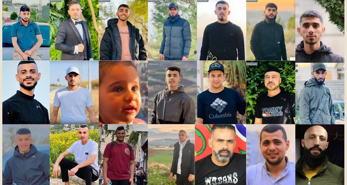 Ils s’appelaient : Muhammad Ragheb Kamil (23 ans), Muhammad Amer Zakarneh (18 ans), Layla Muhammad Ayman Al-Khatib (2 ans et demi), Ahmed Mahmoud Hashash (42 ans), Adam Sub Laban (18 ans), qu’Abdel Jawad Yasser Al-Ghoul (26 ans), Ayman Fadi Al-Naji (22 ans), Ihab Muhammad Attiwi (23 ans), Ramez Bassam Damiri (24 ans), Mohammad Sharif Al-Asali (35 ans), Ibrahim Adnan Ashour (25 ans), Omar Abu Al-Heijja (25 ans), Muntasir Bani Matar (24 ans), Oussama Ma’arouf Bani Odeh (19 ans), Ibrahim Mithqal Fayyad Bani Odeh (33 ans), Muhammad Mithqal Fayyad Bani Odeh (36 ans), Jihad Nasser Bani Matar (18 ans), Omar Muhammad Ali Bisharat (28 ans), Suleiman Ahmed Bisharat (22 ans), Abdullah Mahmoud Bani Odeh (22 ans), Saleh Bani Matar (19 ans), Abdul Ramhman Mahmoud Nimr (20 ans), Qasim Aboud Motea Aklik (42 ans), Yazan Hatem Atiya al-Hassan (21 ans) et Amir Ahmed Abdel Rahman Abu Hassan (37 ans).