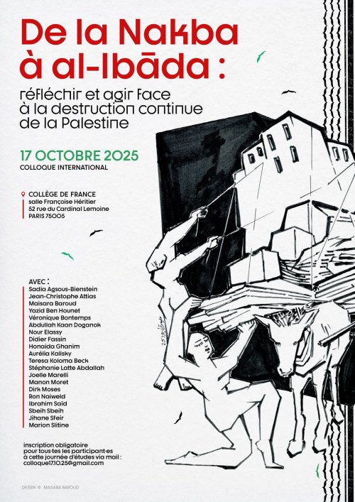 L’ensemble des sciences humaines et sociales se trouve interpellé, bien au-delà du cercle des spécialistes de la Palestine et d’Israël. Cette journée d’études se veut un espace de réflexion critique et de mise en dialogue, destiné aussi à interroger la responsabilité du monde de la recherche face à cette catastrophe.
