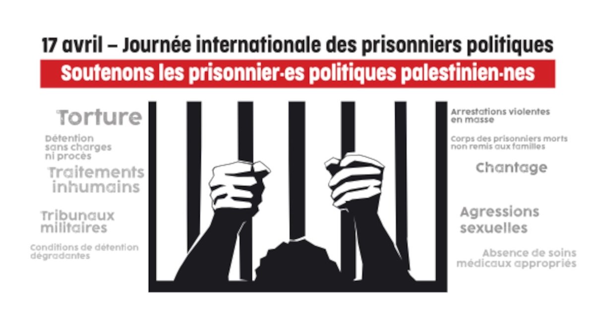 En ce 17 avril, journée internationale de solidarité avec les prisonniers politiques palestiniens, l’AFPS dénonce la violation permanente et institutionnalisée du droit international par l’État d’Israël et apporte tout son soutien à la lutte du peuple palestinien pour le respect de ses droits.