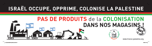 nous demandons l’arrêt de l’importation en France de produits issus des colonies israéliennes, abusivement étiquetés comme produits israéliens.