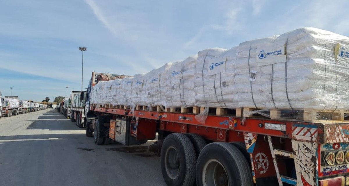 Photo : Les camions du PAM ont commencé à entrer dans Gaza par les passages de Zikim et Kerem Shalom, le 19 janvier 2025 © Programme Alimentaire Mondial