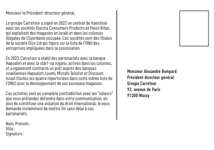 La carte pétition adressée au PDG de Carrefour