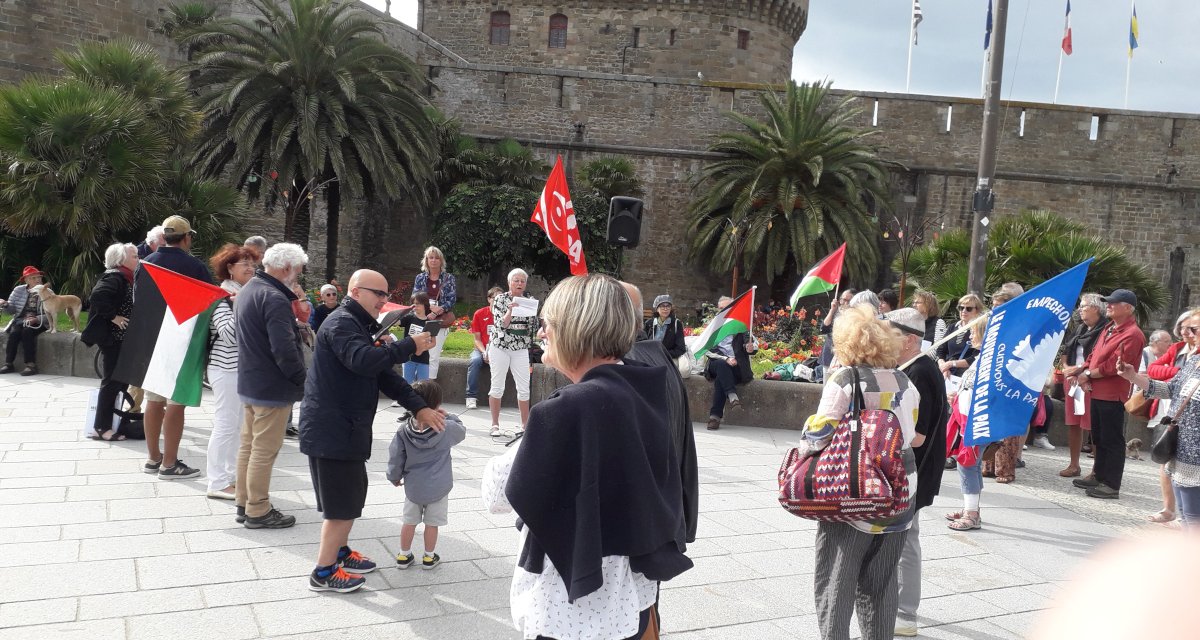 Les organisations suivantes : l’AFPS Pays de St Malo, la FSU 35, la section de St Malo de la Ligue des Droits de l’Homme, Attac Pays Malouin-Jersey, Le NPA St Malo et le Comité malouin du Mouvement de la Paix se sont rassemblées, esplanade saint Vincent à Saint Malo pour dénoncer l’attaque du camp palestinien de Jénine par l’armée israélienne.