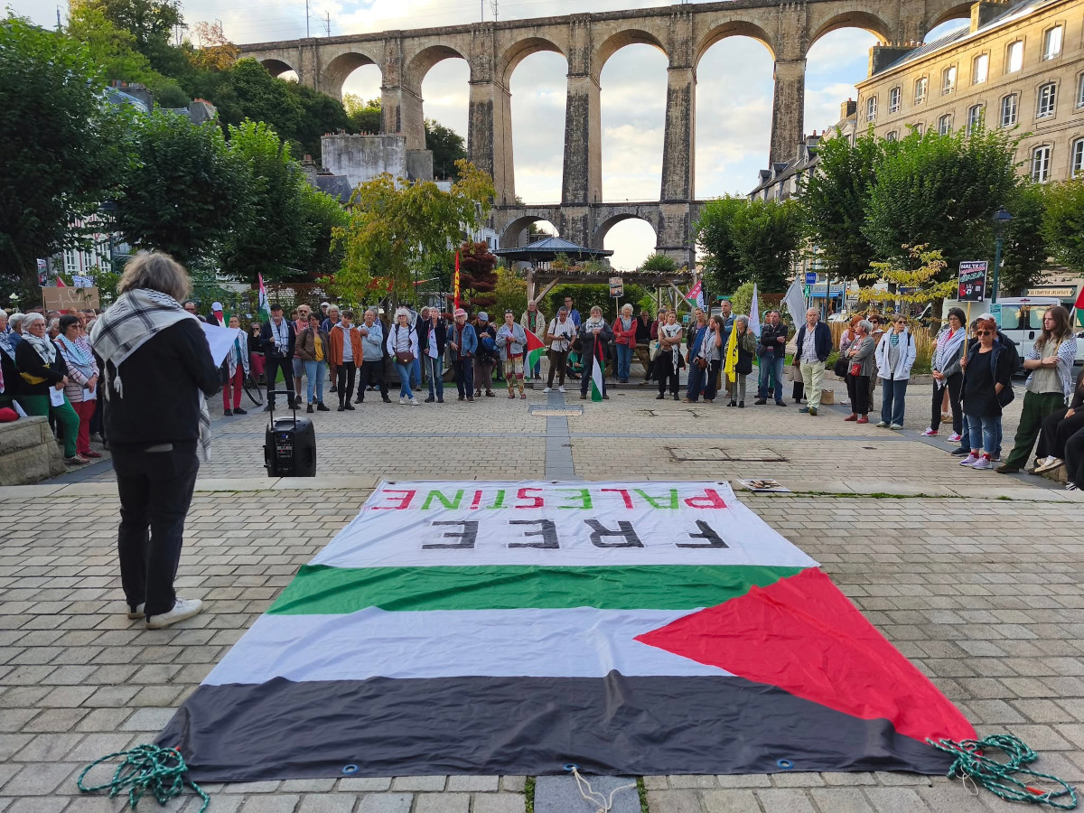C’est avec la gorge nouée et la boule au ventre que près de 170 personnes ce sont rassemblées vendredi 5 septembre 2025 à Morlaix. La bande sonore, qui a accompagné cette marche de soutien à la Palestine pour dénoncer le génocide et la famine à Gaza, était glaçante : bruits de guerre, cris des enfants assassinés, la voix de la petite Hind Rajab, qui voit sa mort arriver après avoir assisté au massacre des siens...