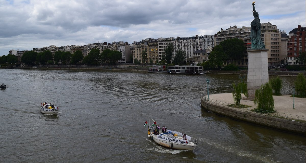 Les organisateurs de cet accueil s’indignent de la politique scandaleuse de L’État français qui refuse dans sa capitale l’arrêt de deux embarcations pacifiques en mission de solidarité avec les deux millions de Palestiniens de Gaza, emprisonnés par un blocus implacable que condamne la communauté internationale dont la France. Refusant d’assumer cette contradiction et d’agir concrètement pour la levée effective du blocus de Gaza, affichant une grave irresponsabilité dans le traitement infligé à la flottille à Paris, la France a-t-elle choisi le camp de la force brute et du déni du droit ?