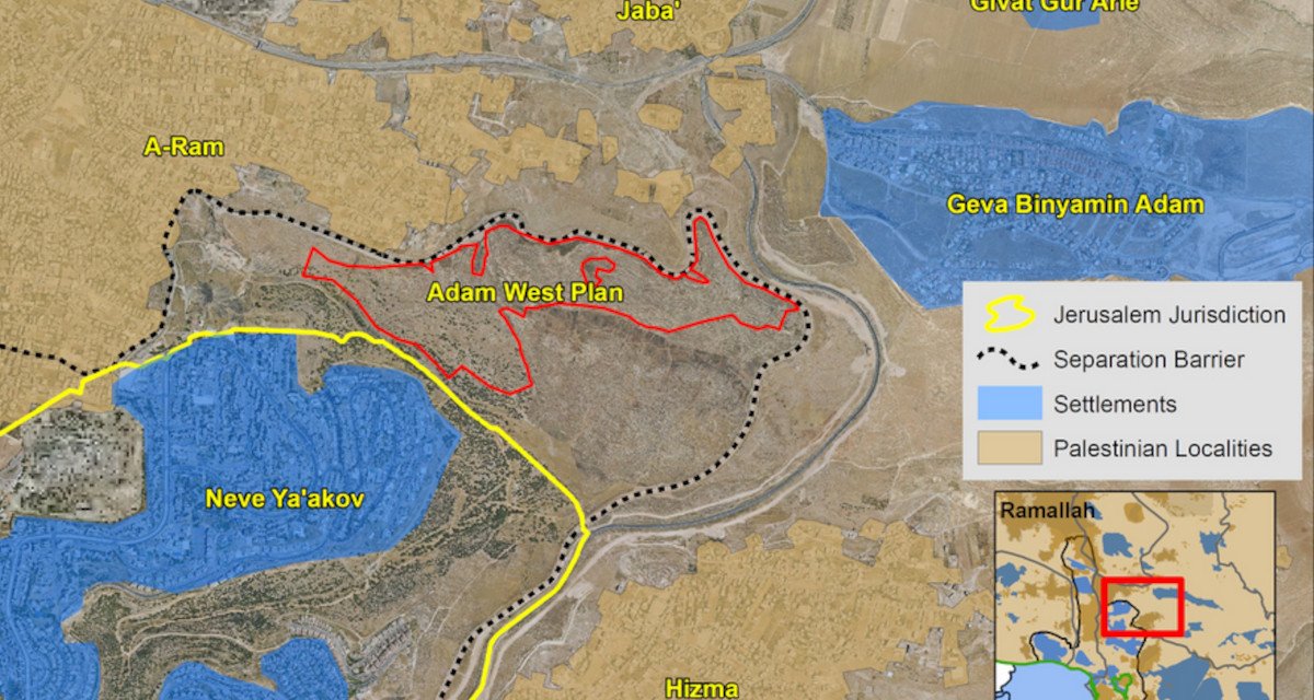 Comme l’extension formelle des limites municipales de Jérusalem en Cisjordanie constituerait une annexion officielle, le plan a été conçu pour être classé comme un « quartier » de la colonie d’Adam et, officiellement, ne faisant pas partie de Jérusalem. En réalité, cependant, il n’existe aucun lien physique possible entre la colonie d’Adam et la nouvelle zone de colonisation, car elles sont séparées par la barrière de séparation et une route interurbaine (route 437).