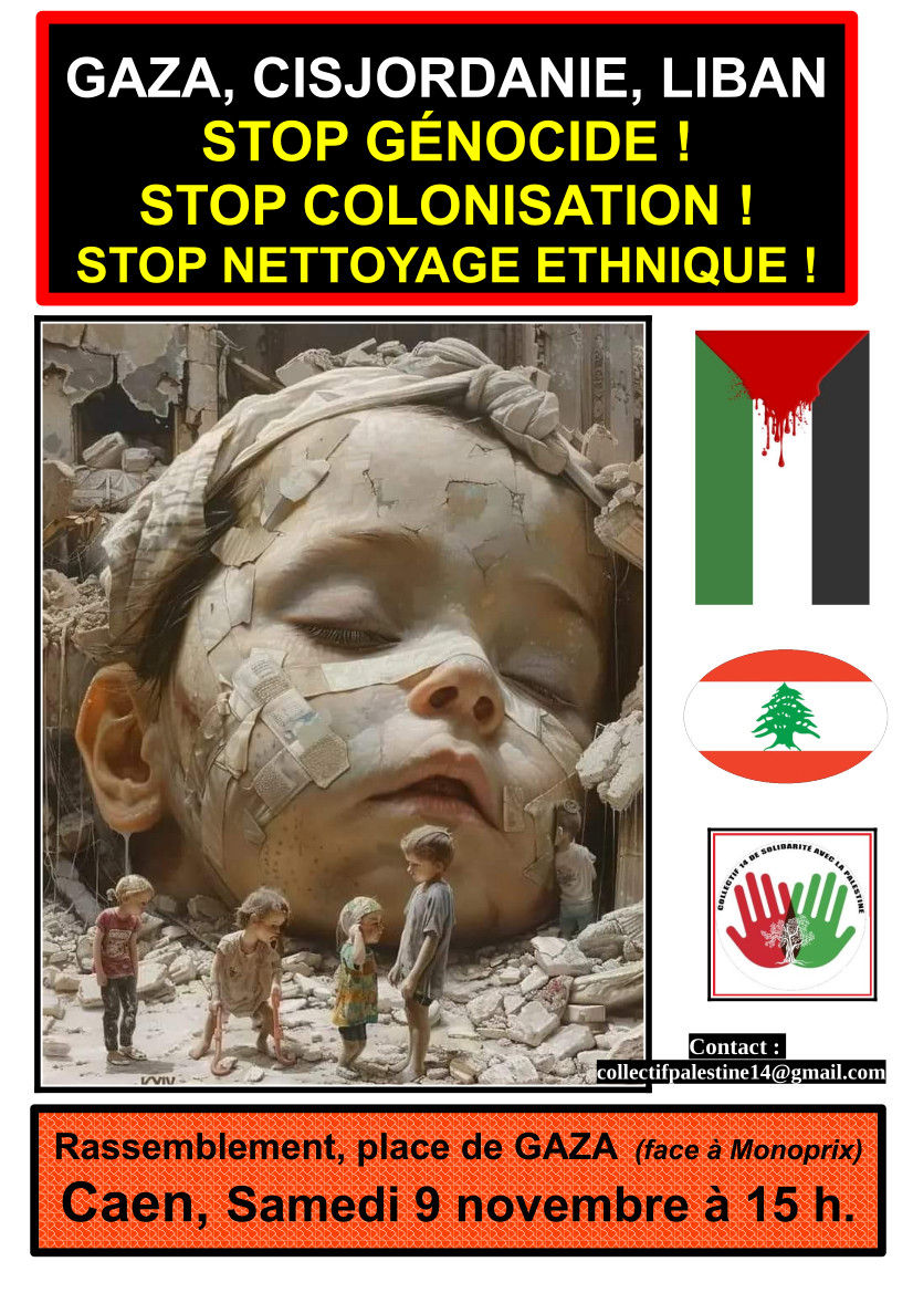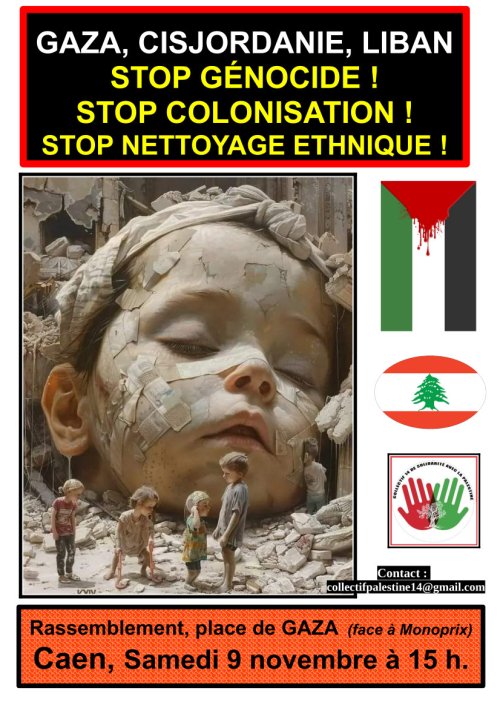 Samedi 9 novembre 2024 à 15h place de Gaza (prés de Monoprix) à Caen