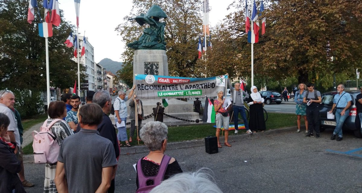 Une soixantaine de personnes étaient présentes. Quatre prises de parole ont eu lieu après celle de la Présidente de l’AFPS Albertville lisant des extraits de l’article de Gidéon Levy sur l’arrogance israélienne et celle d’un militant précisant la position de l’AFPS Albertville.