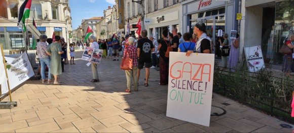 Comme chaque semaine depuis presque 2 ans, une cinquantaine de personnes se sont rassemblées dans la rue piétonne au centre d’Angoulême pour dénoncer le génocide à Gaza et réclamer justice pour les Palestinien.n.e.s à l’appel de Charente Palestine Solidarité (AFPS).