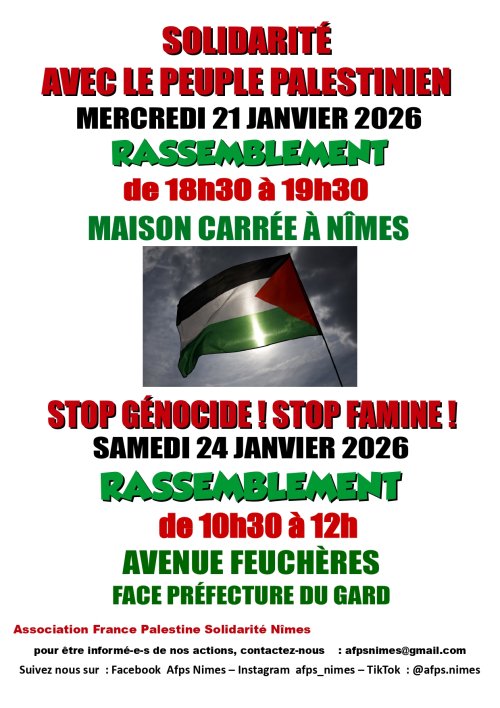 Communiqués mardi 20 janvier 2026 Communiqué de l’AFPS Pour les Palestinien·nes et les peuples du monde, le droit ou la barbarie ?