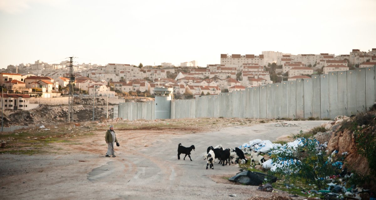 Photo : Un berger palestinien et son troupeau dans la ville de Hizma en Cisjordanie, près du mur de séparation et de la colonie israélienne de Pisgat Ze’ev à Jérusalem Est le 12 décembre 2011 (Active Stills)