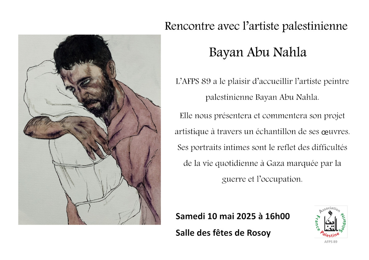 Accueil > Mobilisation > Agenda global > France > Yonne > Rencontre avec l’artiste palestinienne Bayan Abu Nahla