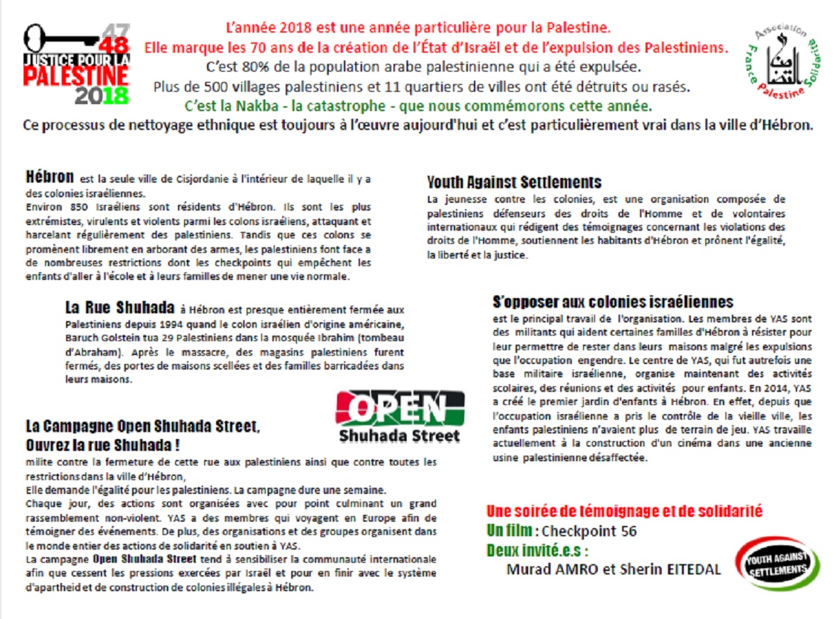 Tournée française de la campagne Open Shuhada Street / Ouvrez la rue Shuhada !