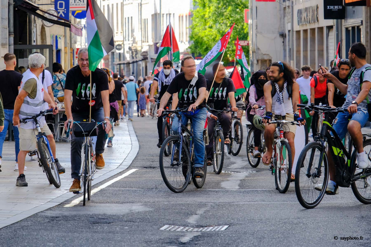 L’AFPS de Besançon et de sa région a organisé une vélorution pour la Palestine à Besançon le jour du départ du Tour de France, le 26 juin. Cette manifestation a été menée avec d’autres organisations partenaires dans le cadre de la Coordination Palestine de Franche-Comté, et s’est déroulée au même moment à Besançon et à Belfort.