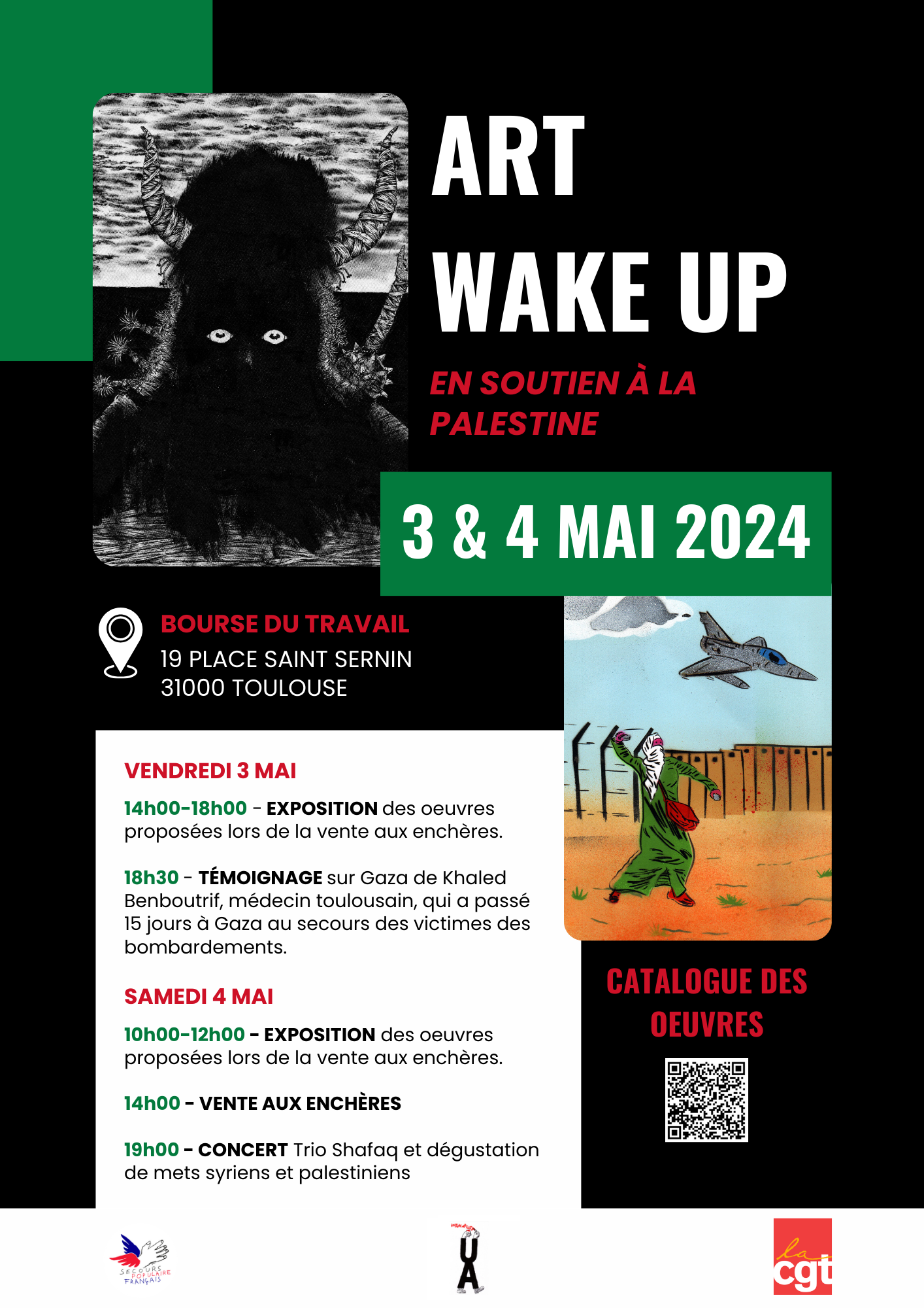 vente aux enchères spéciale “Art Wake Up” organisée par Unitum Artists en partenariat avec le Secours Populaire, avec pour objectif de soutenir les populations victimes de la guerre en Palestine.